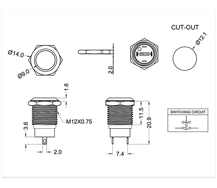 ◆安装孔12mm,点动复位常开功能。安装部防水、防尘等。产品的抗冲击性、抗震性和耐腐蚀性。
