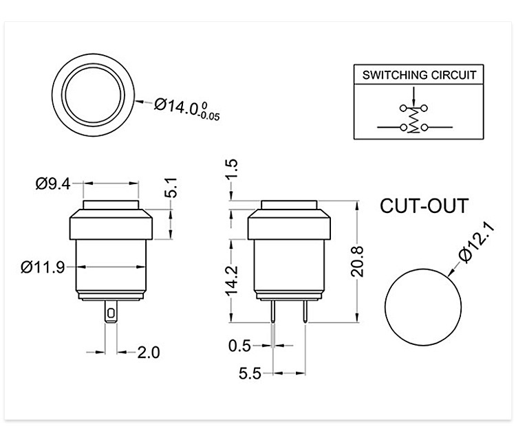 ◆安装孔12mm,点动复位常开功能。安装部防水、防尘等。小的功耗,更全面的电压规格(DC/AC1.8V-220V),全新的不锈钢按钮大大提高了产品的抗冲击性、抗震性和耐腐蚀性。