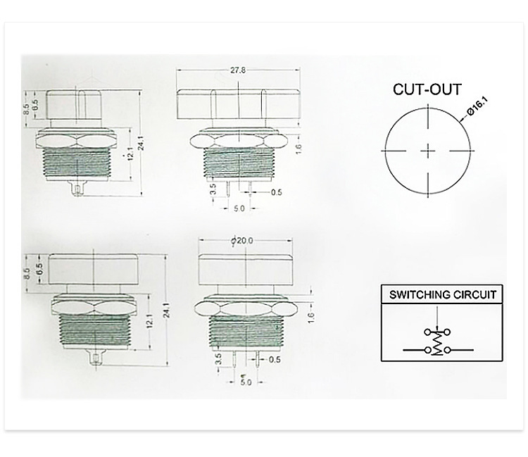 ◆安装孔径16mm,产品属于防水系列金属按键开关,轻触复位常开功能。安装部防水、防尘,抗冲击性、抗震性和耐腐蚀性。