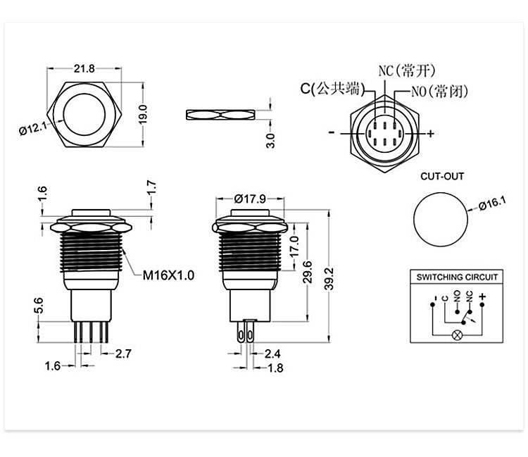 ◆安装孔径16mm,复位常开功能。安装部防水、防尘等。小的功耗,更全面的电压规格(DC/AC1.8V-220V),全新的不锈钢按钮大大提高了产品的抗冲击性、抗震性和耐腐蚀性。