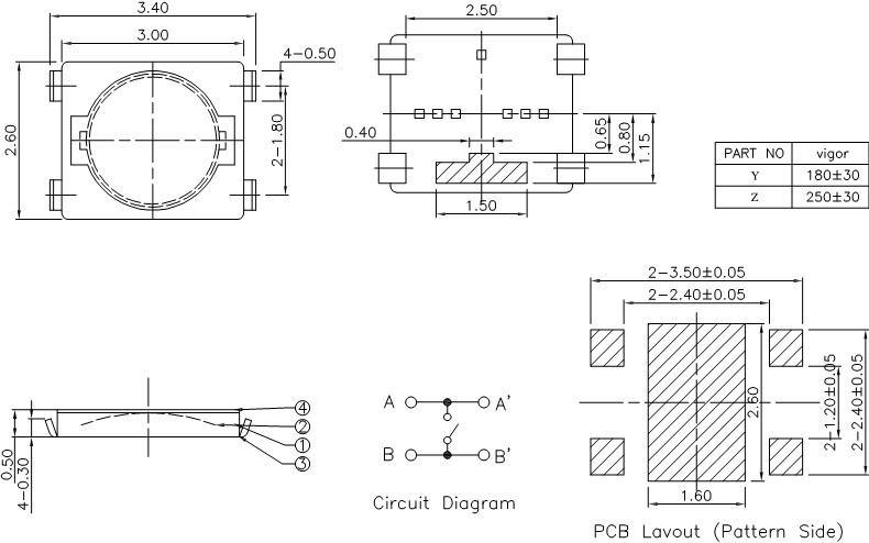 • 2.6x3.0x0.45轻触开关超薄轻触开关四脚轻触开关四脚微动开关