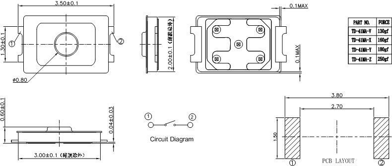 3.1 Operating Force: 250±50gf