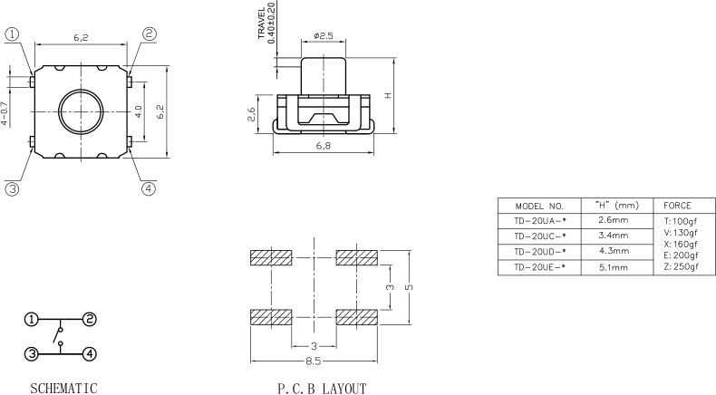 3.2 Travel: 0.25±0.10mm