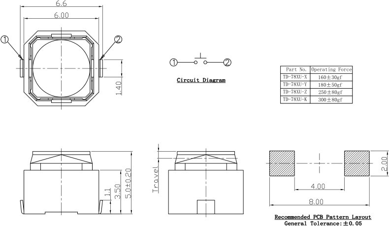 3.1 Operating Force: See the drawing