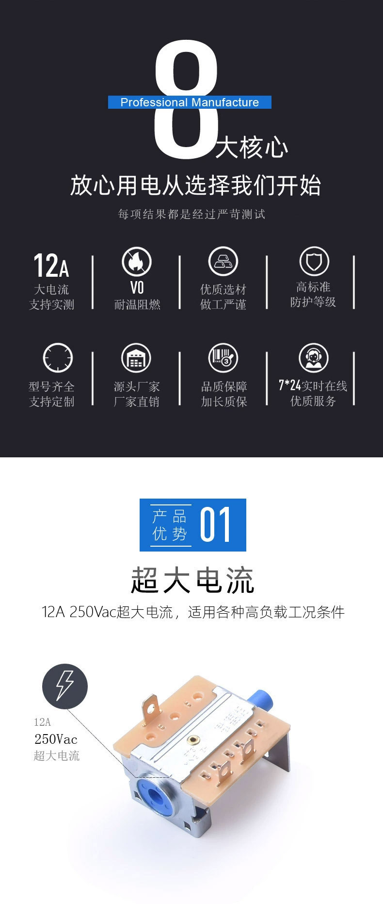 6.本款旋转式电源开关的安规认证随机测试。