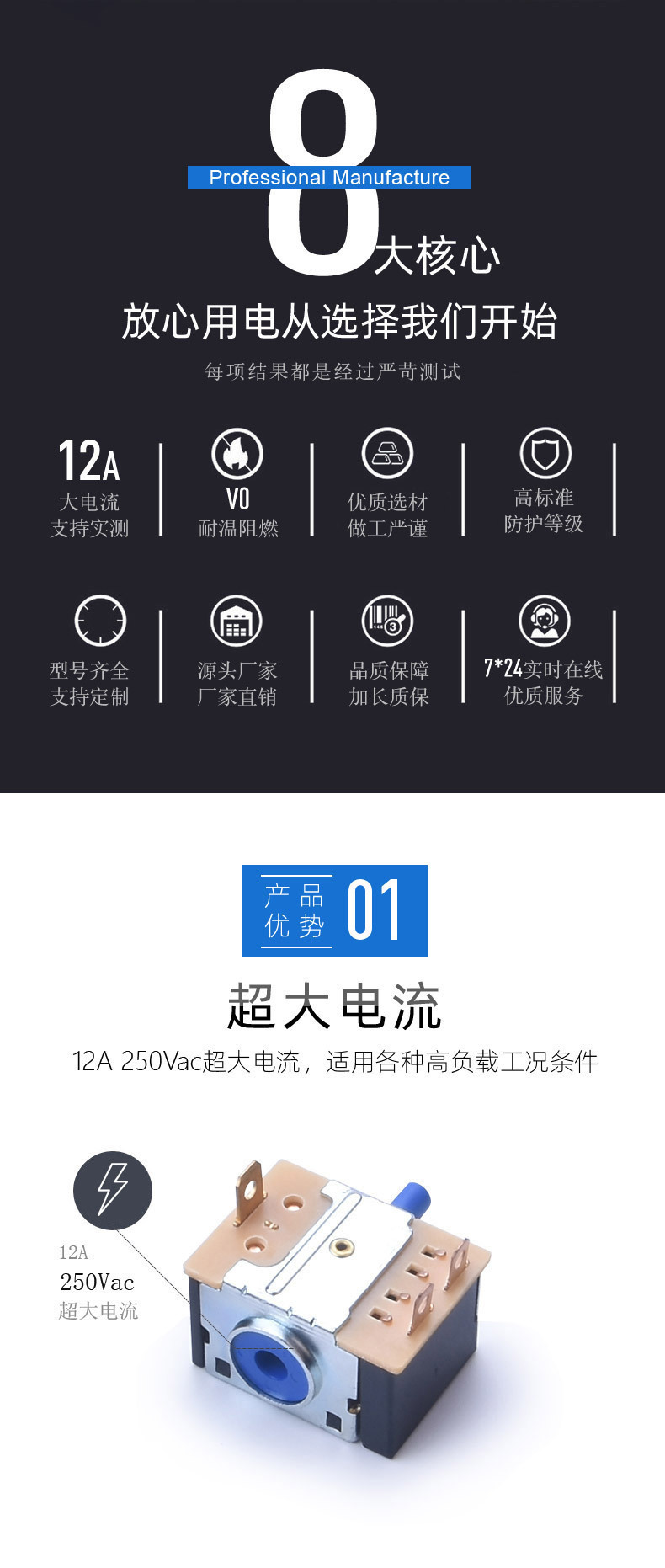 6.本款旋转式电源开关的安规认证随机测试。