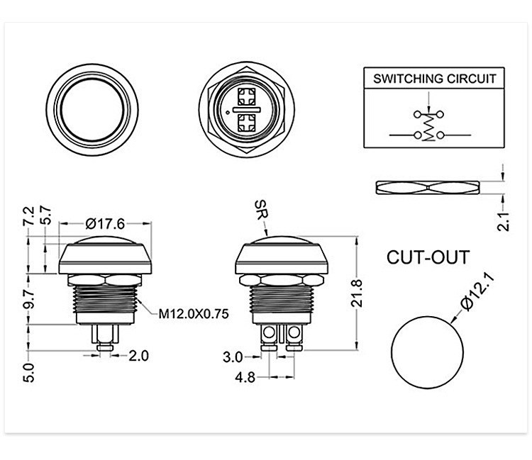 ◆安装孔12mm,点动复位常开功能。安装部防水、防尘等。抗冲击性、抗震性和耐腐蚀性。
