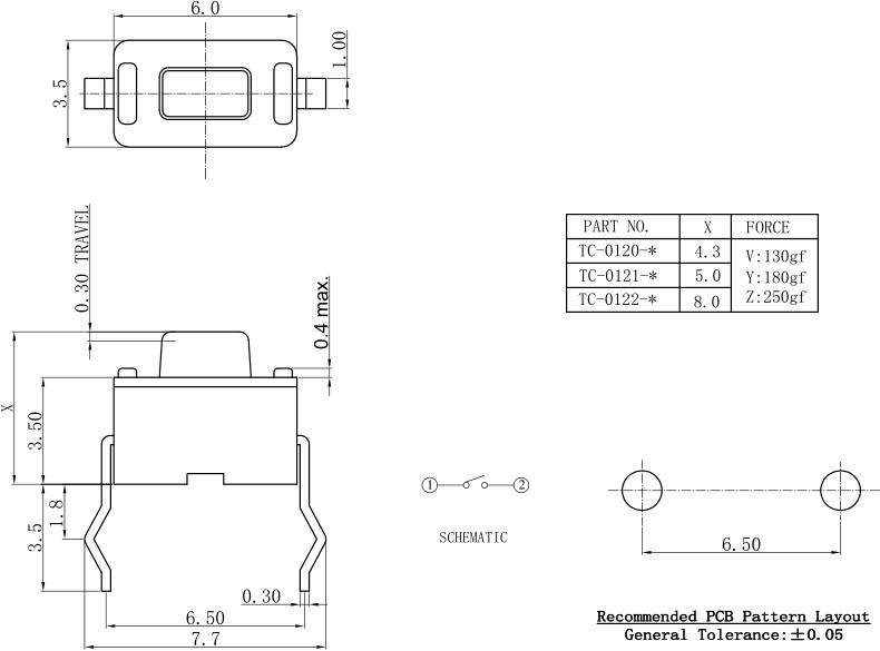 3.1 Operating Force: See the drawing