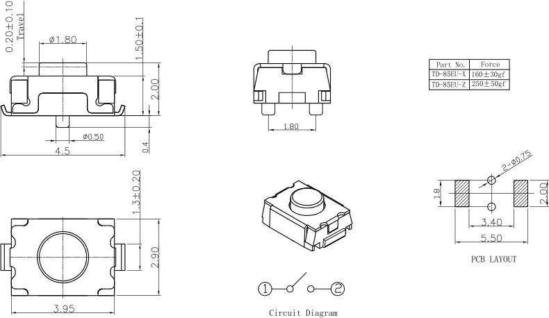 3.1 Operating Force: See the drawing