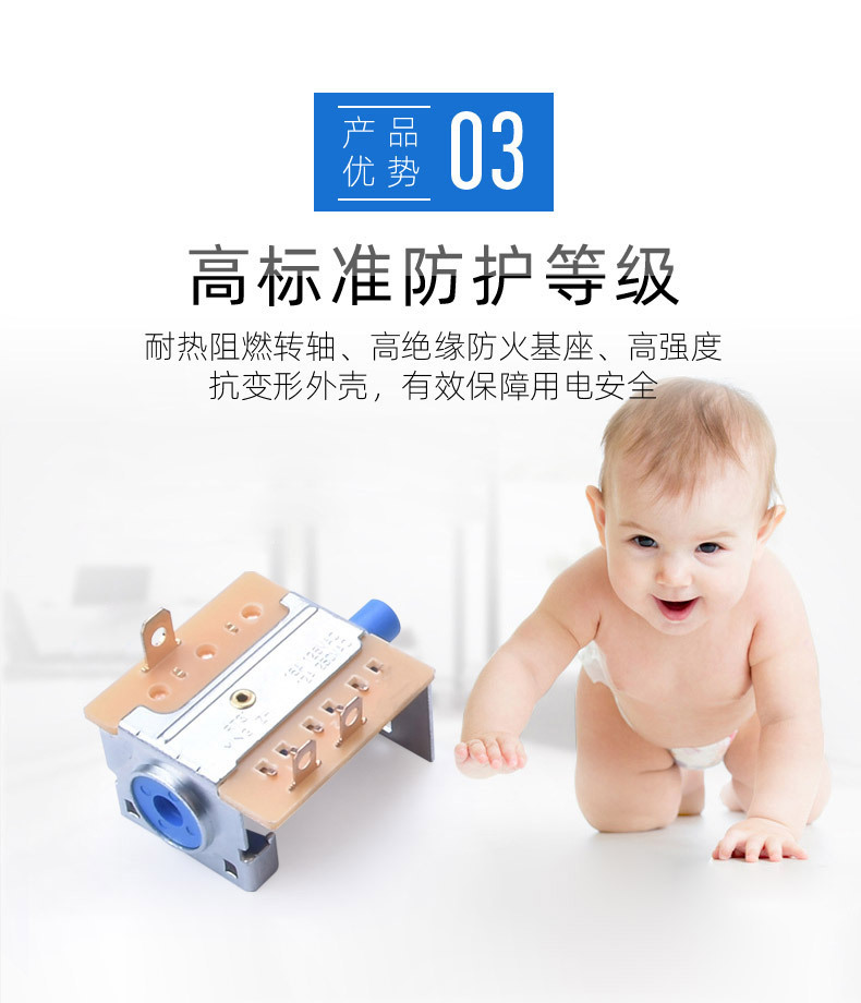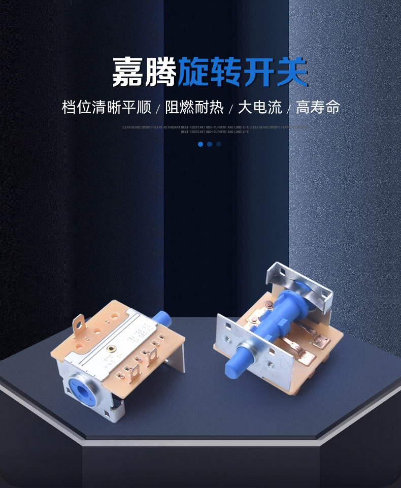 7.综述:旋转开关多用在电暖器、烤箱、电气灶、电烤炉、鼓风机、加湿器,、按摩器材、 电烤箱、 暖风机等家用电器及仪器、机械设备做电源控制机械等大功率电器上。可360度通段旋转,档位之间的角度有90/60/45(可作4档,6档,8档功能)