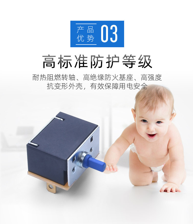 7.综述:旋转开关多用在电暖器、烤箱、电气灶、电烤炉、鼓风机、加湿器,、按摩器材、 电烤箱、 暖风机等家用电器及仪器、机械设备做电源控制机械等大功率电器上。可360度通段旋转,档位之间的角度有90/60/45(可作4档,6档,8档功能)